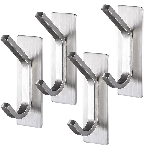 Drenky Handtuchhaken Selbstklebend, 4 Stück Silber Klebehaken Extra Stark Edelstahl SUS 304 Wasserdicht Haken Selbstklebend Ohne Bohren Mit Klebepads Kleiderhaken Selbstklebend