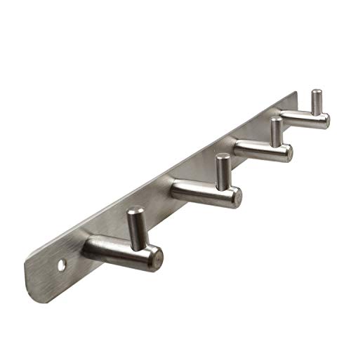 Stahlia Hakenleiste Kleiderhaken EDELSTAHL gebürstet Garderobenleiste Garderobenhaken mit 1/4/6/8/10 Haken Wandhaken Wandgarderobe, Länge wählbar: 4 Haken(L: 310mm) Modell:JULIA