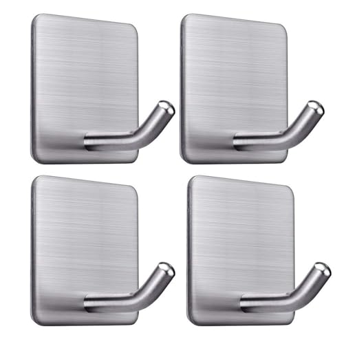 lomdung 4 Stück Selbstklebende Haken, Handtuch Halterung Ohne Bohren, Edelstahl Handtuch Kleiderhaken, Super Klebrig, Starke Tragfähigkeit, für Küchen Badezimmer und Toilettenkabinette.