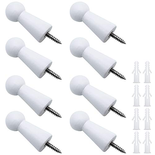 NewZC 8 Stück Weiß Holz Kleiderhaken Natürliche Holz Wandhaken 4.4x1.9cm Kleiner Haken 90° Haken Aufhänger für Kleidung Schal Hut Tasche - Maximale Belastung 3 kg