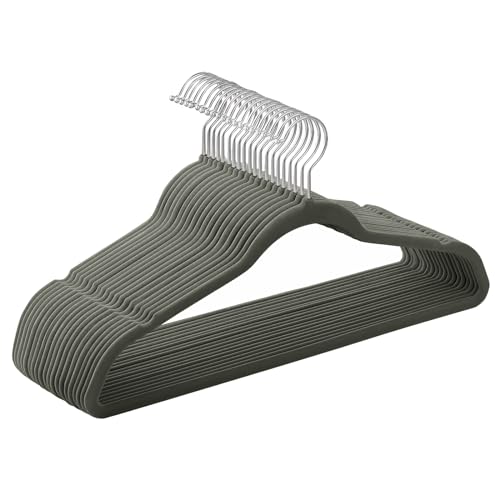 SONGMICS Kleiderbügel Samt, 20er Set, Bügel, Jackenbügel, 41,5 cm breit, Anzugbügel, dünn, gut belastbar, um 360° drehbarer Haken, für Mäntel, Hemden und Anzüge, grau CRF026G20