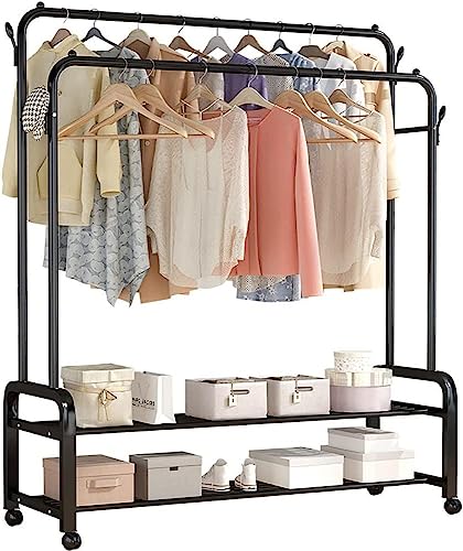 WaTsKY Rollbarer Kleiderständer, Stabiler freistehender Metall-Garderobenständer für Zuhause, mit 2 Kleiderstangen und 2 Ablagen, [...]