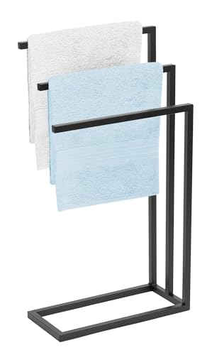 FRAMADO - Handtuchhalter Stehend - Handtuchständer Freistehend - BxTxH 45 x 21 x 84 cm - aus Metall, mit 3 Stangen und Anti-Rutschpads, [...]